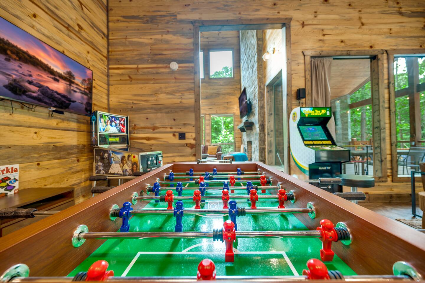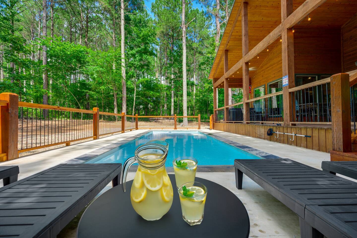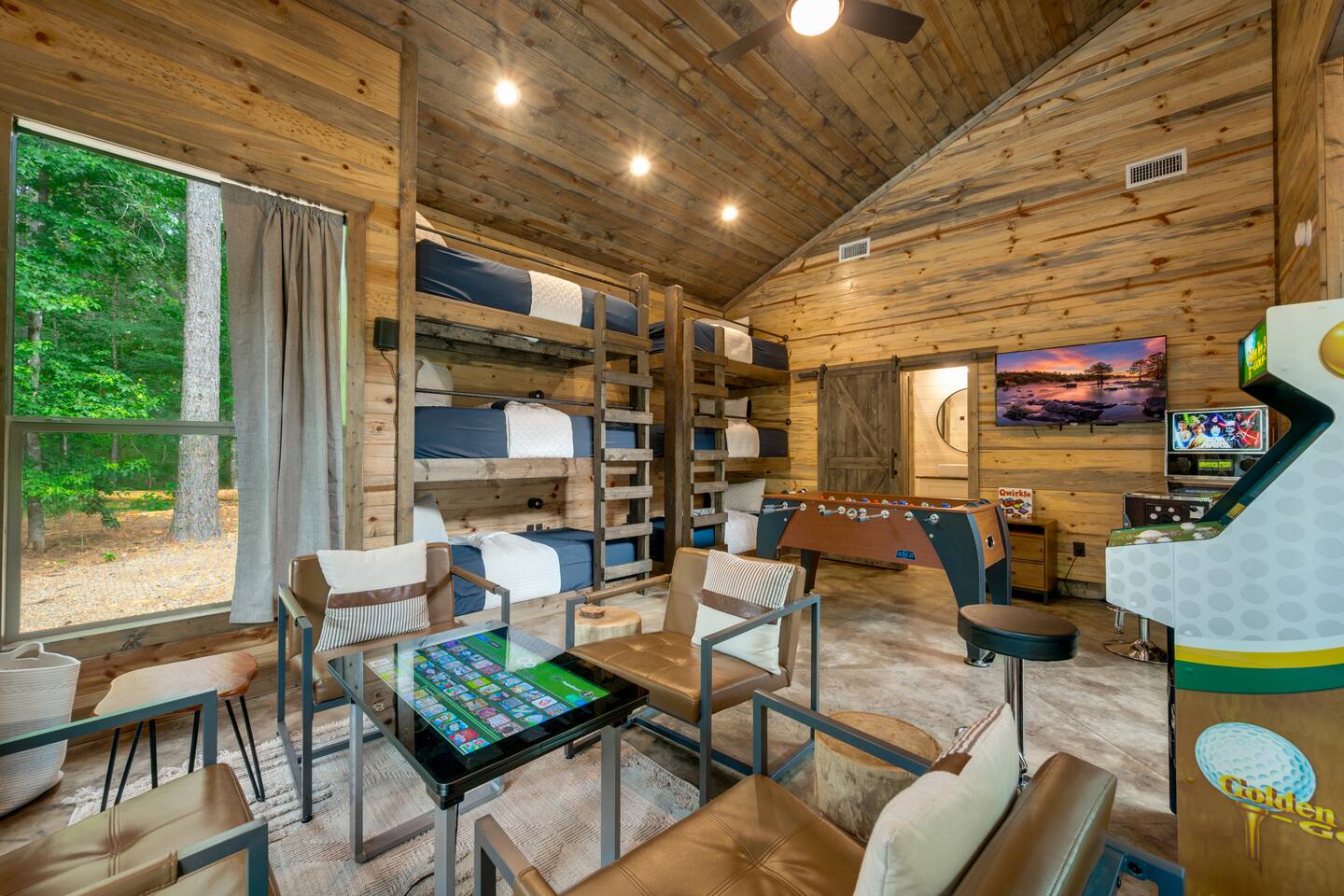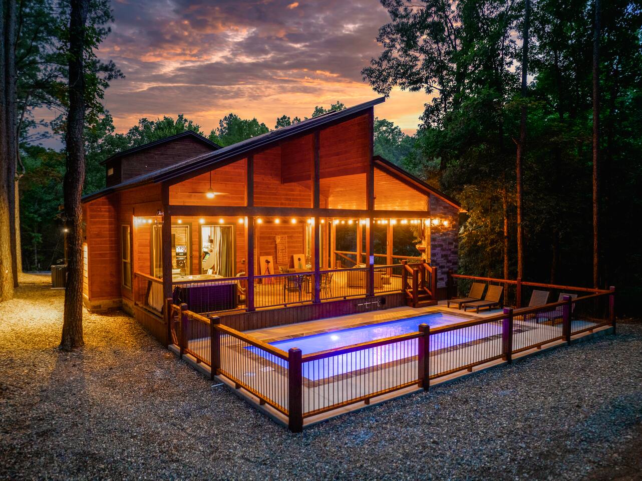 KEY FEATURES: - 2,200 sq. ft. of indoor space + 1,000+ sq. ft. of outdoor living - Creekside Cabin - Hot tub - Heated Pool (Heating incurs an additional fee of $75/day) - Tube slide - Play Set - Fire Pit - Fun lawn games - Luxury kitchen - Arcade games, Shuffleboard & MORE! Included Amenities at a Glance - Fully equipped kitchen: Crock pot, toaster, blender, BBQ tools - Coffee bar with drip coffee, Keurig & starter supplies - Shampoo, conditioner, body wash, towels, and paper products - In-unit washer & dryer - Fire extinguisher, smoke alarm, first aid kit *** PLEASE NOTE *** -Pool heat must be arranged at least 48 hours prior to your stay. The pool temperature will be set to a maximum of 87 degrees. Please note, it can take up to 24 hours for the pool to reach this temperature, depending on the outdoor temperature at the time of heating. -Pool heat is $75 per night and must be on for the duration of your stay. The pool heat fee is specifically to cover the costs associated with the propane demand to heat the pool. -When temperatures go below 50 degrees, typically in December, January, and February, the pool heat is less effective. We recommend utilizing the hot tub as an alternative during cold weather. Pool heating is NOT available when outside temperatures drop below 45°F, as it becomes ineffective ☆☆ BEDROOMS ☆☆ Bedroom 1 (Ensuite): Indulge in luxury with a plush king-size bed on the main floor of the cabin. This room also includes a twin daybed, for additional sleeping space. This suite includes a spacious full en suite bathroom for ultimate privacy and convenience. Bedroom 2 (Ensuite) : This bedroom is also on the main floor and features a king-size bed and its own en suite bathroom, offering comfort and privacy for additional guests. Bedroom 3 (Ensuite): Located on the second floor, this bedroom offers a king-sized bed and also includes two twin beds (a day bed with a trundle), for additional sleeping space. It has its own en suite bathroom, including a soaking tub. Open Bunk Room (Bedroom 4): Perfectly designed for kids, this spacious, open bunk room features two sets of triple bunks and is stocked with games for endless entertainment. The room offers views of the hot tub and pool and is on the main level right off the living room. ☆☆ BATHROOMS ☆☆ We offer four full bathrooms for your convenience. This includes a soothing separate shower and bathtub in the upstairs ensuite bathroom, an en suite with a shower in both main floor king rooms, and a tub/shower combo in the bunkroom. ☆☆ KITCHEN, DINING, GREAT ROOM ☆☆ Enter our kitchen, crafted to spark your culinary creativity. Fully stocked with cooking tools and modern appliances, everything you need is within reach. Whether whipping up a quick breakfast or a gourmet dinner, this space turns cooking into a delight. Our inviting dining area comfortably seats up to 12, making it ideal for intimate family meals or friendly get-togethers. Conveniently situated next to the kitchen, it allows for an effortless flow from cooking to dining. The living room features a gas fireplace and two wonderfully comfortable sofas, a bright and inviting living room with stunning forest and creek views, perfect for relaxation. Unwind in this peaceful space while enjoying the serene waterside scenery through large windows. ☆☆ BUNK ROOM GAME ROOM ☆☆ Located directly adjacent to the living space, this expansive entertainment area offers a variety of activities for all ages. The space includes: A lively game room featuring an infinity table, pin ball machine, foosball table, and arcade games, perfect for friendly competition and hours of fun. Whether you're challenging someone to a game of chess on the infinity table, testing your foosball skills, or playing your favorite arcade classics, this room has something for everyone. For added entertainment, you’ll also find a shuffleboard table along the edge of the living room. ☆☆ OUTSIDE SPACE ☆☆ Enjoy stunning creek views and sounds from our outdoor area. Step into a serene outdoor oasis by the creek, perfect for relaxation and entertainment. Enjoy al fresco dining in the spacious dining area with a grill, ideal for cookouts. Unwind in the heated pool ($75/night), soak in the hot tub, or let the kids get their energy out on the play set. Gather around the sectional on the covered patio with the fireplace going or enjoy the cozy firepit for evening s'mores and storytelling. The expansive space offers plenty of room for fun with lawn games, all set against the backdrop of the tranquil creek streaming by. A perfect spot for memorable outdoor experiences. 📜 Review the House Rules and Neighborhood Highlights, and Safety & Property sections before booking. 📜 To comply with our insurance policy and ensure a smooth check-in process, we require a signed rental agreement and a copy of your ID to confirm your reservation. The full agreement is available before booking upon request. Your personal information will be treated with the utmost confidentiality and used solely for verification purposes. Feel free to block out any sensitive information, such as your identification number. We require the photo and name to match the reservation details and the address to be visible. While you will feel the privacy and serenity of the forest and Ouachita mountains, the cabin is in a prime location: • 3 miles to restaurants • 7 miles to Broken Bow Lake • 9 miles to Beavers Bend State Park • 7.5 miles to Golf Course • 62 miles to Talimena National Scenic Byway Guest access Guest will have access to the entire house minus one locked storage closet. Other things to note: - The guest who books must be one of the guests staying on the property (sorry - no booking for others). - Unexpected things can happen, so WE STRONGLY RECOMMEND getting travel insurance in case you need to cancel your booking. - No Parties or fireworks - No Smoking indoors or outdoors - No illegal activity - Only