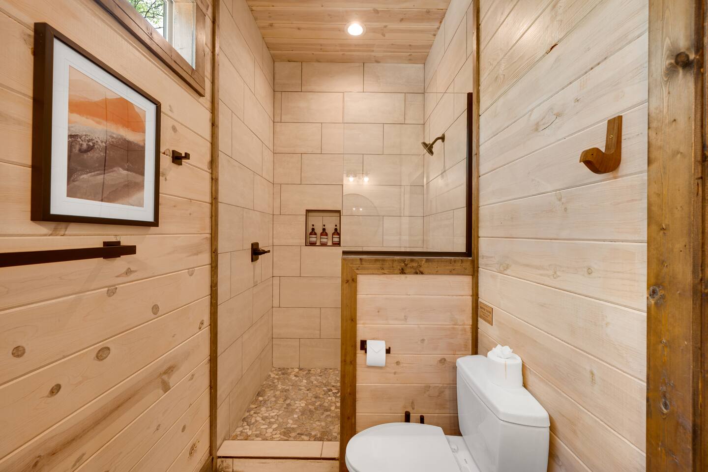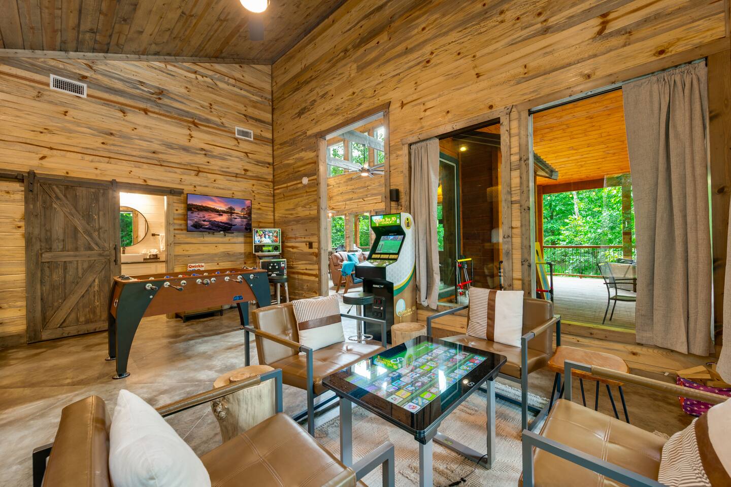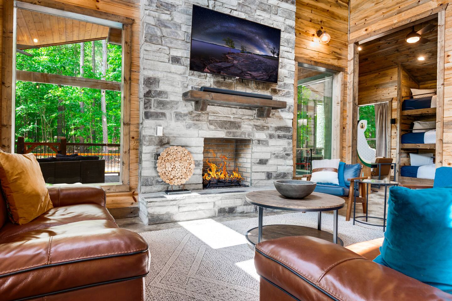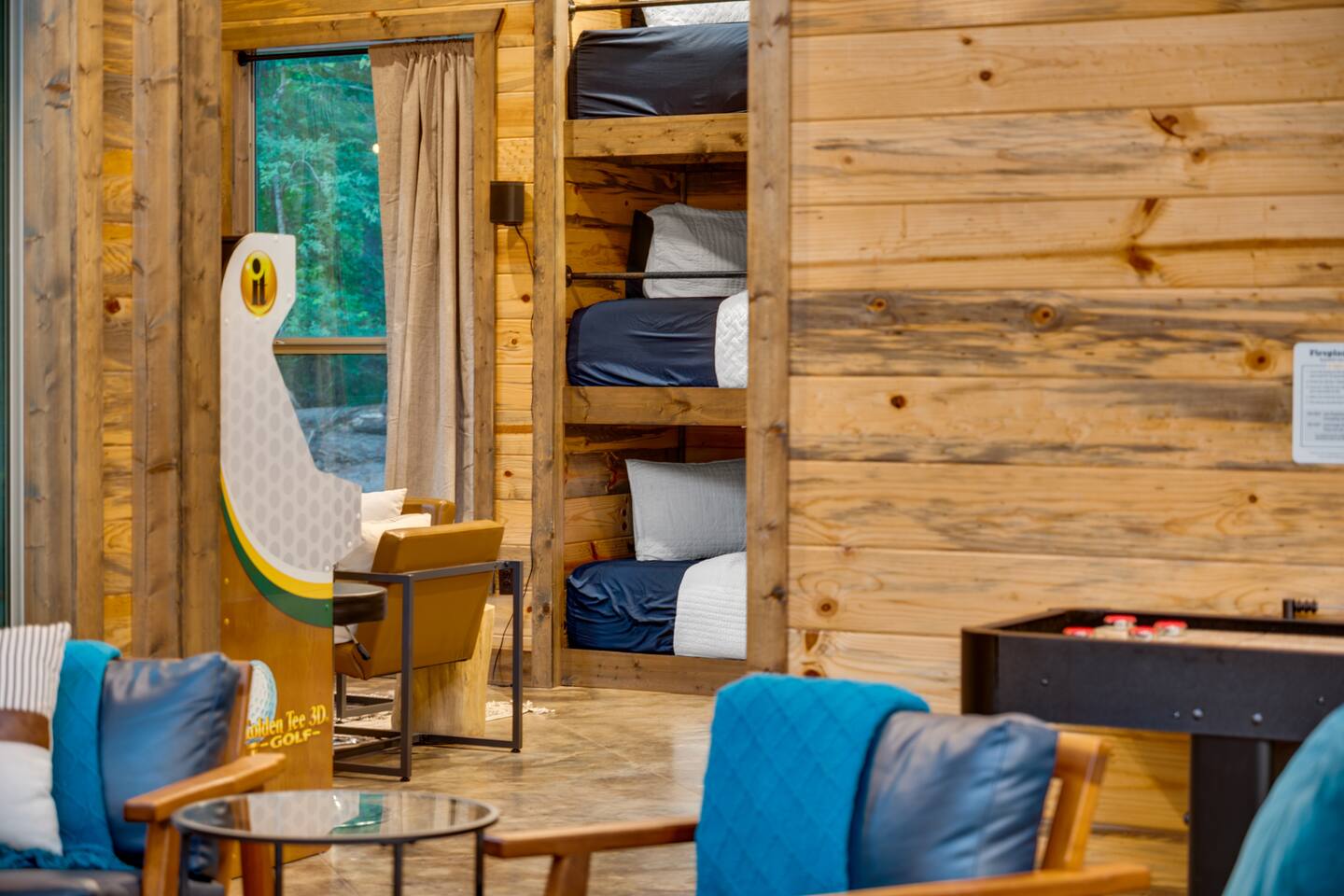KEY FEATURES: - 2,200 sq. ft. of indoor space + 1,000+ sq. ft. of outdoor living - Creekside Cabin - Hot tub - Heated Pool (Heating incurs an additional fee of $75/day) - Tube slide - Play Set - Fire Pit - Fun lawn games - Luxury kitchen - Arcade games, Shuffleboard & MORE! Included Amenities at a Glance - Fully equipped kitchen: Crock pot, toaster, blender, BBQ tools - Coffee bar with drip coffee, Keurig & starter supplies - Shampoo, conditioner, body wash, towels, and paper products - In-unit washer & dryer - Fire extinguisher, smoke alarm, first aid kit *** PLEASE NOTE *** -Pool heat must be arranged at least 48 hours prior to your stay. The pool temperature will be set to a maximum of 87 degrees. Please note, it can take up to 24 hours for the pool to reach this temperature, depending on the outdoor temperature at the time of heating. -Pool heat is $75 per night and must be on for the duration of your stay. The pool heat fee is specifically to cover the costs associated with the propane demand to heat the pool. -When temperatures go below 50 degrees, typically in December, January, and February, the pool heat is less effective. We recommend utilizing the hot tub as an alternative during cold weather. Pool heating is NOT available when outside temperatures drop below 45°F, as it becomes ineffective ☆☆ BEDROOMS ☆☆ Bedroom 1 (Ensuite): Indulge in luxury with a plush king-size bed on the main floor of the cabin. This room also includes a twin daybed, for additional sleeping space. This suite includes a spacious full en suite bathroom for ultimate privacy and convenience. Bedroom 2 (Ensuite) : This bedroom is also on the main floor and features a king-size bed and its own en suite bathroom, offering comfort and privacy for additional guests. Bedroom 3 (Ensuite): Located on the second floor, this bedroom offers a king-sized bed and also includes two twin beds (a day bed with a trundle), for additional sleeping space. It has its own en suite bathroom, including a soaking tub. Open Bunk Room (Bedroom 4): Perfectly designed for kids, this spacious, open bunk room features two sets of triple bunks and is stocked with games for endless entertainment. The room offers views of the hot tub and pool and is on the main level right off the living room. ☆☆ BATHROOMS ☆☆ We offer four full bathrooms for your convenience. This includes a soothing separate shower and bathtub in the upstairs ensuite bathroom, an en suite with a shower in both main floor king rooms, and a tub/shower combo in the bunkroom. ☆☆ KITCHEN, DINING, GREAT ROOM ☆☆ Enter our kitchen, crafted to spark your culinary creativity. Fully stocked with cooking tools and modern appliances, everything you need is within reach. Whether whipping up a quick breakfast or a gourmet dinner, this space turns cooking into a delight. Our inviting dining area comfortably seats up to 12, making it ideal for intimate family meals or friendly get-togethers. Conveniently situated next to the kitchen, it allows for an effortless flow from cooking to dining. The living room features a gas fireplace and two wonderfully comfortable sofas, a bright and inviting living room with stunning forest and creek views, perfect for relaxation. Unwind in this peaceful space while enjoying the serene waterside scenery through large windows. ☆☆ BUNK ROOM GAME ROOM ☆☆ Located directly adjacent to the living space, this expansive entertainment area offers a variety of activities for all ages. The space includes: A lively game room featuring an infinity table, pin ball machine, foosball table, and arcade games, perfect for friendly competition and hours of fun. Whether you're challenging someone to a game of chess on the infinity table, testing your foosball skills, or playing your favorite arcade classics, this room has something for everyone. For added entertainment, you’ll also find a shuffleboard table along the edge of the living room. ☆☆ OUTSIDE SPACE ☆☆ Enjoy stunning creek views and sounds from our outdoor area. Step into a serene outdoor oasis by the creek, perfect for relaxation and entertainment. Enjoy al fresco dining in the spacious dining area with a grill, ideal for cookouts. Unwind in the heated pool ($75/night), soak in the hot tub, or let the kids get their energy out on the play set. Gather around the sectional on the covered patio with the fireplace going or enjoy the cozy firepit for evening s'mores and storytelling. The expansive space offers plenty of room for fun with lawn games, all set against the backdrop of the tranquil creek streaming by. A perfect spot for memorable outdoor experiences. 📜 Review the House Rules and Neighborhood Highlights, and Safety & Property sections before booking. 📜 To comply with our insurance policy and ensure a smooth check-in process, we require a signed rental agreement and a copy of your ID to confirm your reservation. The full agreement is available before booking upon request. Your personal information will be treated with the utmost confidentiality and used solely for verification purposes. Feel free to block out any sensitive information, such as your identification number. We require the photo and name to match the reservation details and the address to be visible. While you will feel the privacy and serenity of the forest and Ouachita mountains, the cabin is in a prime location: • 3 miles to restaurants • 7 miles to Broken Bow Lake • 9 miles to Beavers Bend State Park • 7.5 miles to Golf Course • 62 miles to Talimena National Scenic Byway Guest access Guest will have access to the entire house minus one locked storage closet. Other things to note: - The guest who books must be one of the guests staying on the property (sorry - no booking for others). - Unexpected things can happen, so WE STRONGLY RECOMMEND getting travel insurance in case you need to cancel your booking. - No Parties or fireworks - No Smoking indoors or outdoors - No illegal activity - Only
