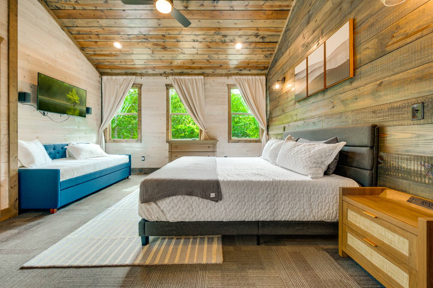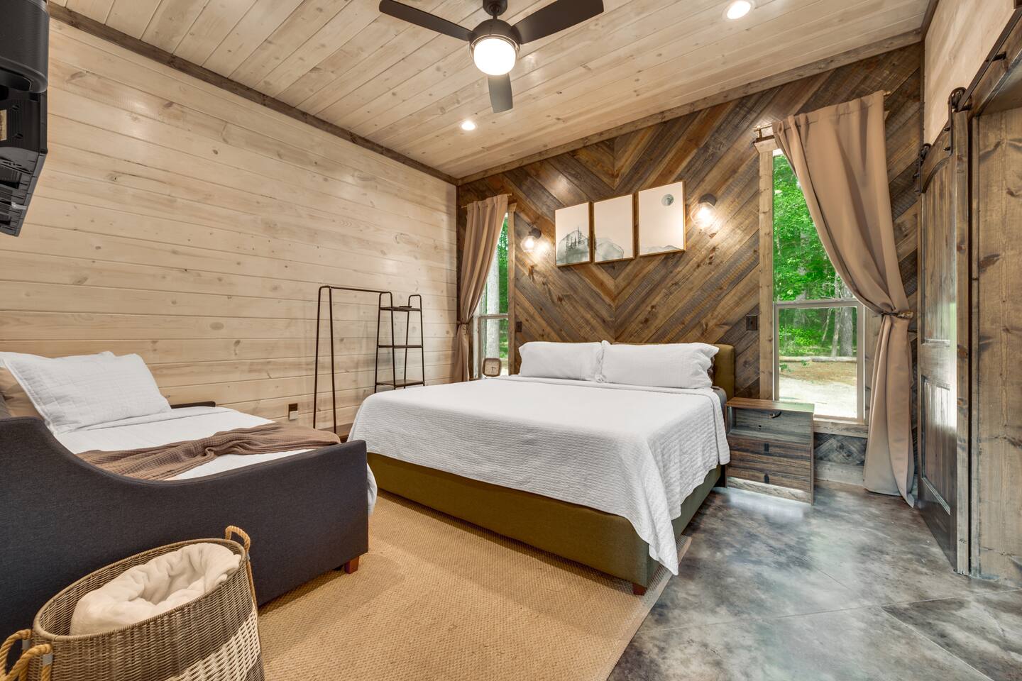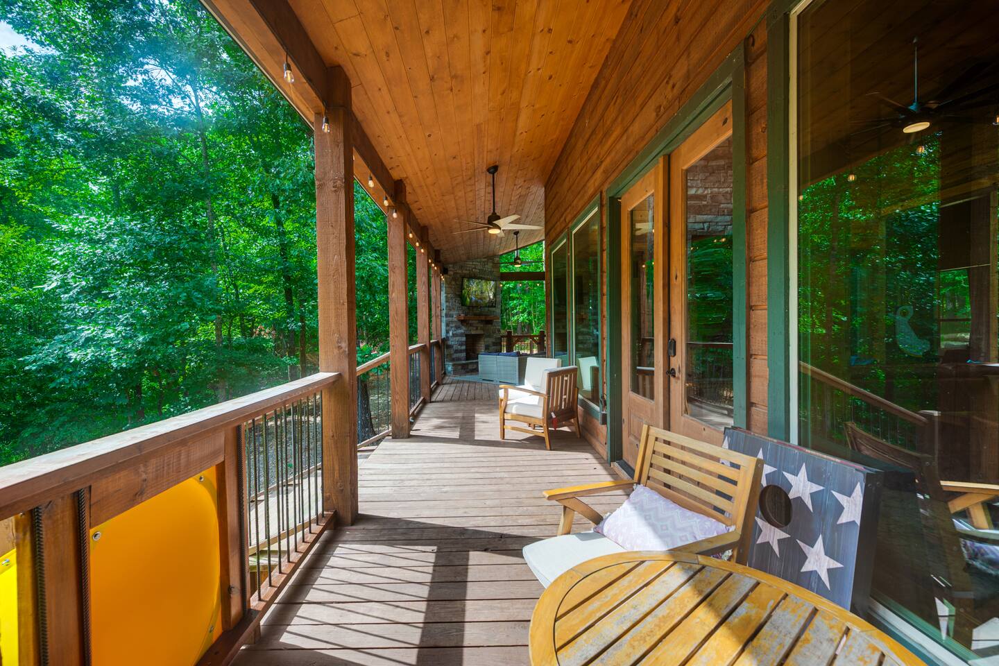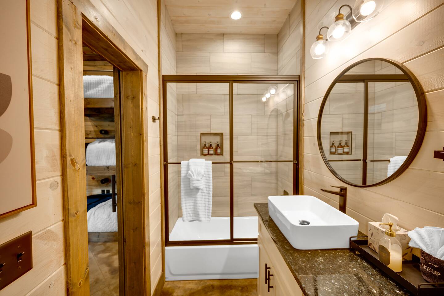 KEY FEATURES: - 2,200 sq. ft. of indoor space + 1,000+ sq. ft. of outdoor living - Creekside Cabin - Hot tub - Heated Pool (Heating incurs an additional fee of $75/day) - Tube slide - Play Set - Fire Pit - Fun lawn games - Luxury kitchen - Arcade games, Shuffleboard & MORE! Included Amenities at a Glance - Fully equipped kitchen: Crock pot, toaster, blender, BBQ tools - Coffee bar with drip coffee, Keurig & starter supplies - Shampoo, conditioner, body wash, towels, and paper products - In-unit washer & dryer - Fire extinguisher, smoke alarm, first aid kit *** PLEASE NOTE *** -Pool heat must be arranged at least 48 hours prior to your stay. The pool temperature will be set to a maximum of 87 degrees. Please note, it can take up to 24 hours for the pool to reach this temperature, depending on the outdoor temperature at the time of heating. -Pool heat is $75 per night and must be on for the duration of your stay. The pool heat fee is specifically to cover the costs associated with the propane demand to heat the pool. -When temperatures go below 50 degrees, typically in December, January, and February, the pool heat is less effective. We recommend utilizing the hot tub as an alternative during cold weather. Pool heating is NOT available when outside temperatures drop below 45°F, as it becomes ineffective ☆☆ BEDROOMS ☆☆ Bedroom 1 (Ensuite): Indulge in luxury with a plush king-size bed on the main floor of the cabin. This room also includes a twin daybed, for additional sleeping space. This suite includes a spacious full en suite bathroom for ultimate privacy and convenience. Bedroom 2 (Ensuite) : This bedroom is also on the main floor and features a king-size bed and its own en suite bathroom, offering comfort and privacy for additional guests. Bedroom 3 (Ensuite): Located on the second floor, this bedroom offers a king-sized bed and also includes two twin beds (a day bed with a trundle), for additional sleeping space. It has its own en suite bathroom, including a soaking tub. Open Bunk Room (Bedroom 4): Perfectly designed for kids, this spacious, open bunk room features two sets of triple bunks and is stocked with games for endless entertainment. The room offers views of the hot tub and pool and is on the main level right off the living room. ☆☆ BATHROOMS ☆☆ We offer four full bathrooms for your convenience. This includes a soothing separate shower and bathtub in the upstairs ensuite bathroom, an en suite with a shower in both main floor king rooms, and a tub/shower combo in the bunkroom. ☆☆ KITCHEN, DINING, GREAT ROOM ☆☆ Enter our kitchen, crafted to spark your culinary creativity. Fully stocked with cooking tools and modern appliances, everything you need is within reach. Whether whipping up a quick breakfast or a gourmet dinner, this space turns cooking into a delight. Our inviting dining area comfortably seats up to 12, making it ideal for intimate family meals or friendly get-togethers. Conveniently situated next to the kitchen, it allows for an effortless flow from cooking to dining. The living room features a gas fireplace and two wonderfully comfortable sofas, a bright and inviting living room with stunning forest and creek views, perfect for relaxation. Unwind in this peaceful space while enjoying the serene waterside scenery through large windows. ☆☆ BUNK ROOM GAME ROOM ☆☆ Located directly adjacent to the living space, this expansive entertainment area offers a variety of activities for all ages. The space includes: A lively game room featuring an infinity table, pin ball machine, foosball table, and arcade games, perfect for friendly competition and hours of fun. Whether you're challenging someone to a game of chess on the infinity table, testing your foosball skills, or playing your favorite arcade classics, this room has something for everyone. For added entertainment, you’ll also find a shuffleboard table along the edge of the living room. ☆☆ OUTSIDE SPACE ☆☆ Enjoy stunning creek views and sounds from our outdoor area. Step into a serene outdoor oasis by the creek, perfect for relaxation and entertainment. Enjoy al fresco dining in the spacious dining area with a grill, ideal for cookouts. Unwind in the heated pool ($75/night), soak in the hot tub, or let the kids get their energy out on the play set. Gather around the sectional on the covered patio with the fireplace going or enjoy the cozy firepit for evening s'mores and storytelling. The expansive space offers plenty of room for fun with lawn games, all set against the backdrop of the tranquil creek streaming by. A perfect spot for memorable outdoor experiences. 📜 Review the House Rules and Neighborhood Highlights, and Safety & Property sections before booking. 📜 To comply with our insurance policy and ensure a smooth check-in process, we require a signed rental agreement and a copy of your ID to confirm your reservation. The full agreement is available before booking upon request. Your personal information will be treated with the utmost confidentiality and used solely for verification purposes. Feel free to block out any sensitive information, such as your identification number. We require the photo and name to match the reservation details and the address to be visible. While you will feel the privacy and serenity of the forest and Ouachita mountains, the cabin is in a prime location: • 3 miles to restaurants • 7 miles to Broken Bow Lake • 9 miles to Beavers Bend State Park • 7.5 miles to Golf Course • 62 miles to Talimena National Scenic Byway Guest access Guest will have access to the entire house minus one locked storage closet. Other things to note: - The guest who books must be one of the guests staying on the property (sorry - no booking for others). - Unexpected things can happen, so WE STRONGLY RECOMMEND getting travel insurance in case you need to cancel your booking. - No Parties or fireworks - No Smoking indoors or outdoors - No illegal activity - Only