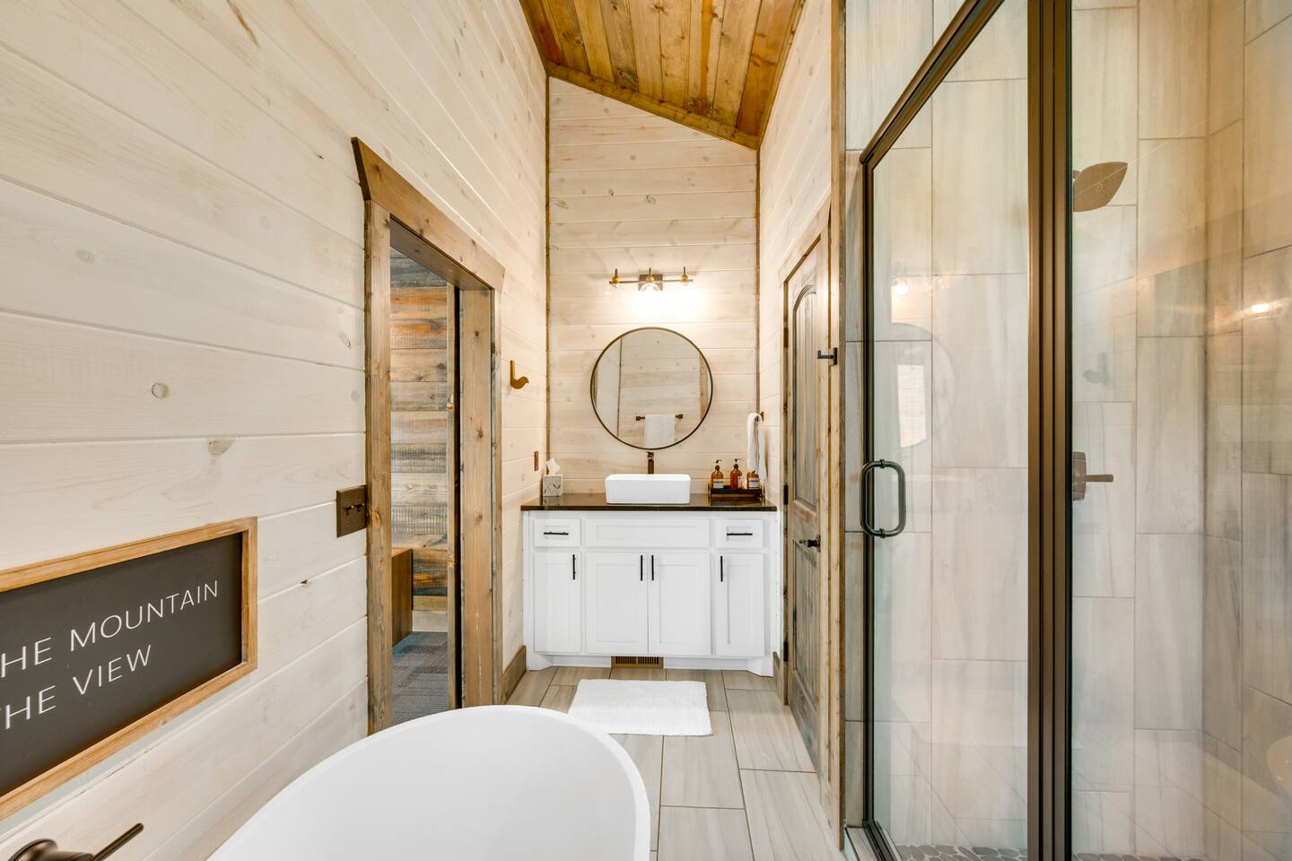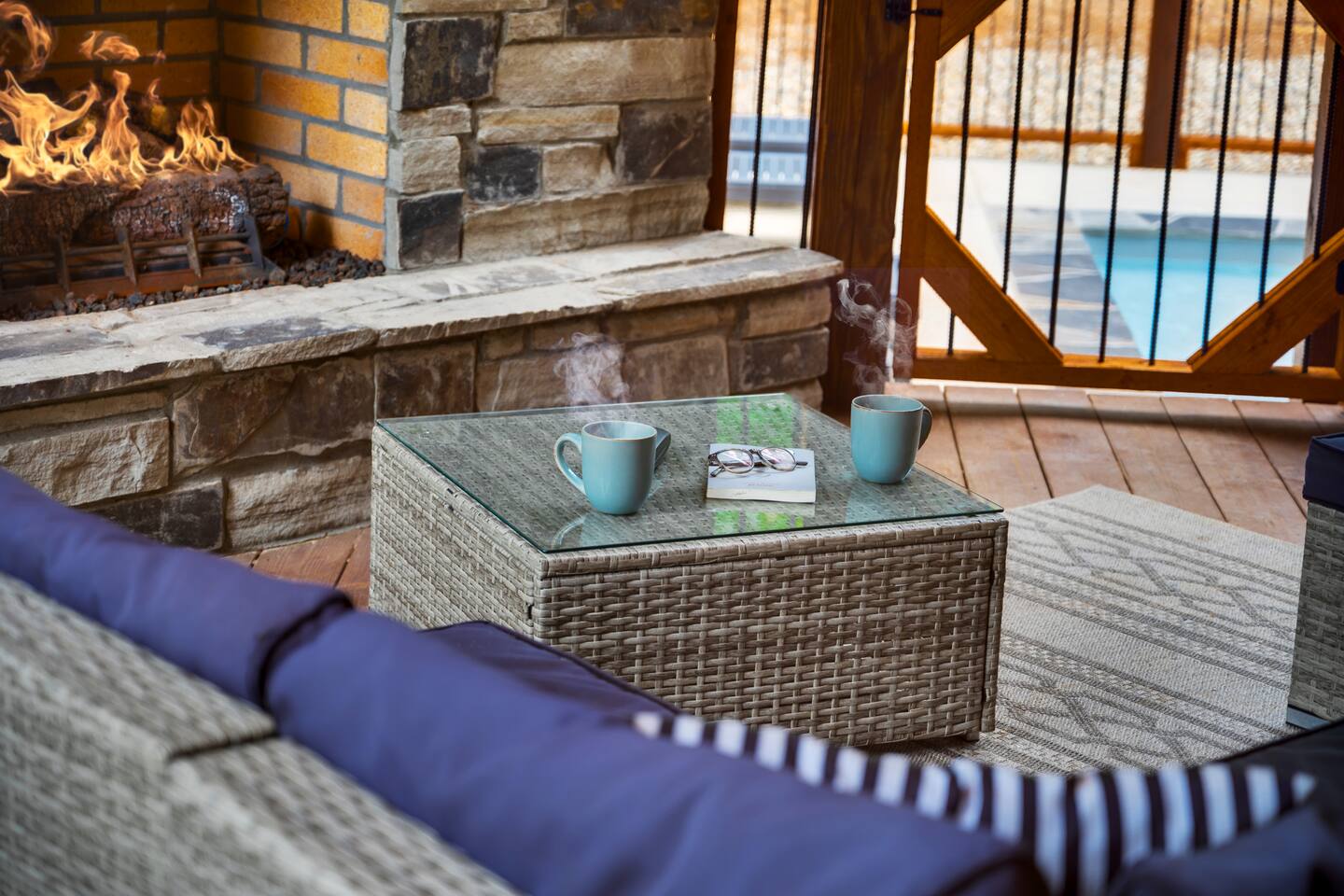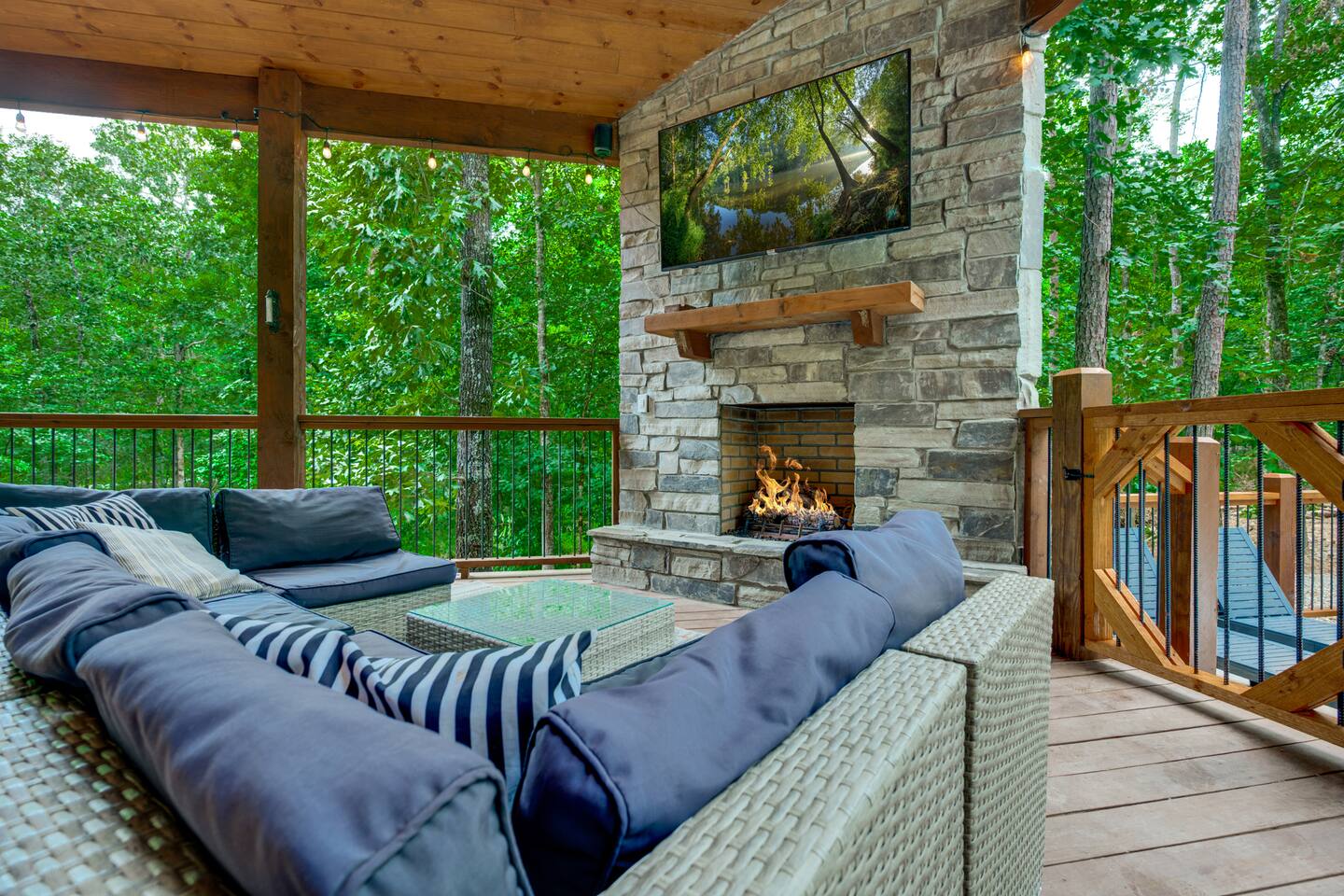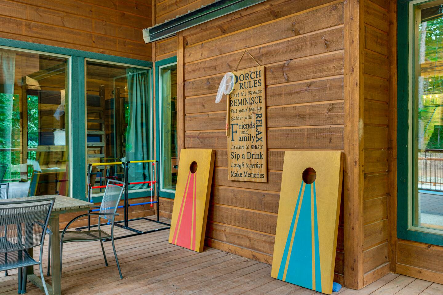 Escape to Aquila, a creek side retreat that sleeps 15. Enjoy the serenity of the rustling pines on the expansive covered patio spaces, complete with a private hot tub & a brand new (June 2025) heated pool for year-round relaxation! Indoors, enjoy classic arcade games and shuffleboard, alongside open living space. The outdoor space features a tube slide and a fire pit where you will hear the sounds of the creek, which is perfect for getting your toes wet and catching minnows.